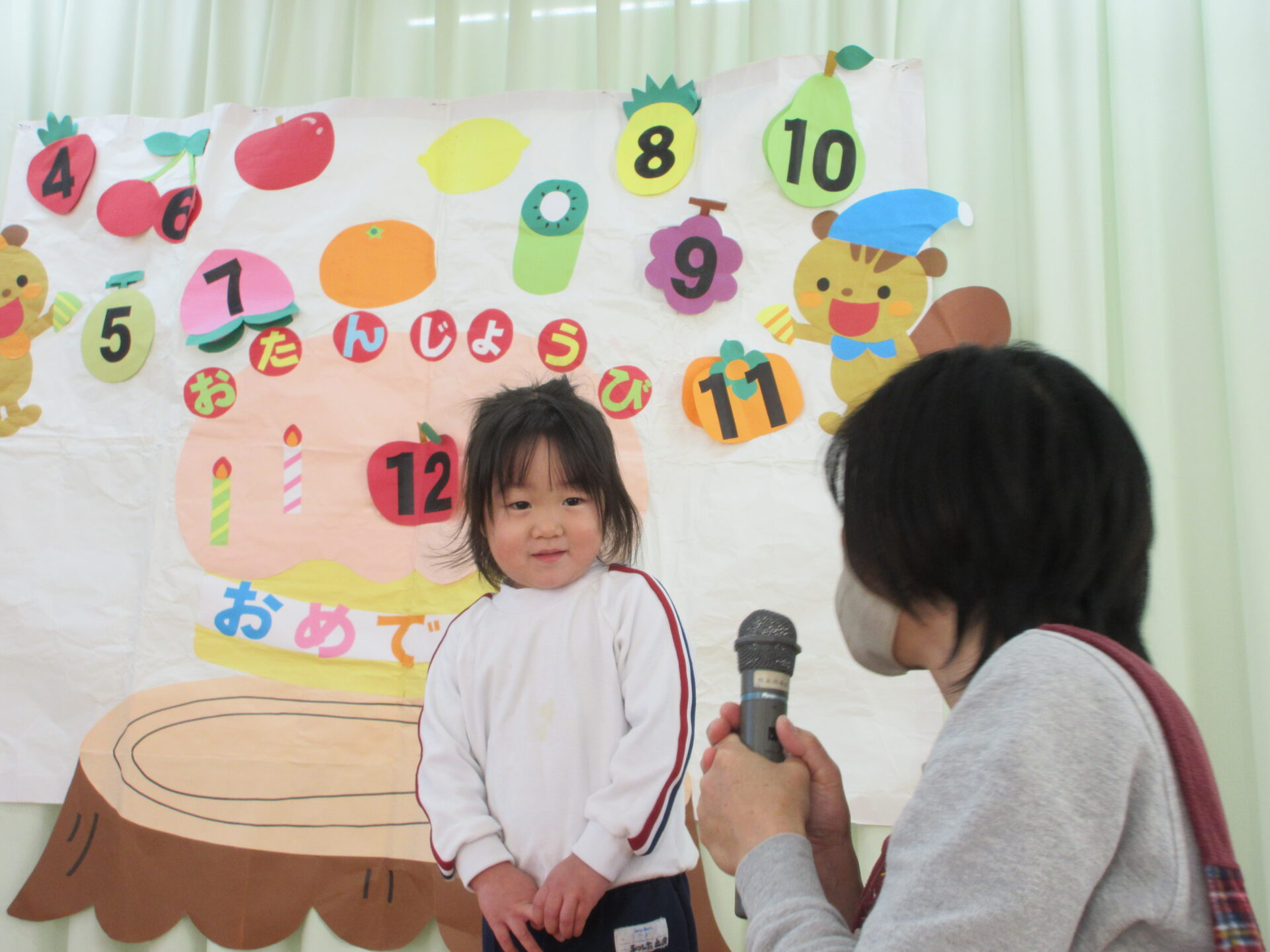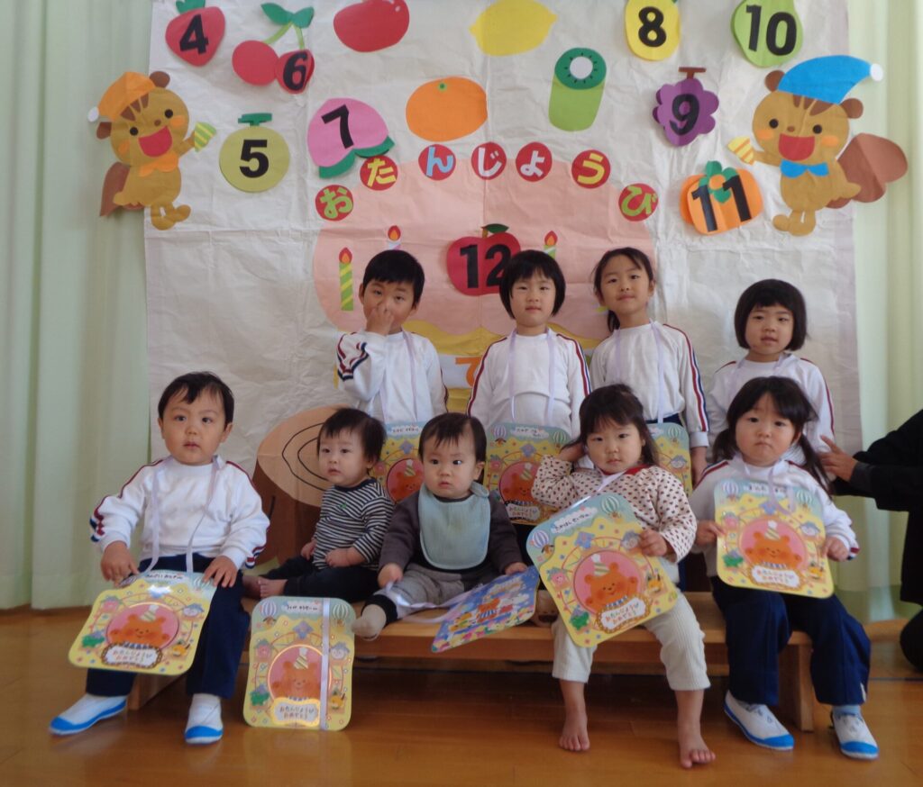 12月16日は12月生まれさんのお誕生日会でした。 みんな元気いっぱいインタビューに答えてくれましたよ。 好きな食べ物…いちご・パイナップル・ぶどう 好きなあそび…おりがみ・おままごと・車を作るのが好き・食べ物の絵本を見るのが好き 大きくなったら…ケーキ屋さん・アイドル・スカイブレーバー・プリキュア 先生からの出し物は『クリスマスシアター』でした。 おやつはロールケーキでした。 12月生まれさんおめでとうおめでとう🎉
