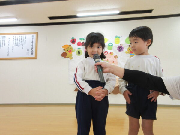 10月21日は10月生まれさんのお誕生日会でした。 元気いっぱいインタビューの答えてくれましたよ。 好きな食べ物…りんご・ぶどう・みかん 大きくなったら…トラックの運転手・消防士・かいじゅう・アイドルプリキュア 先生からの出し物は「おいもほりごっこ」でした。 10月生まれさんおめでとう🎉