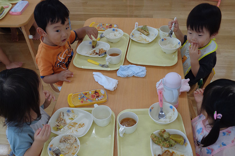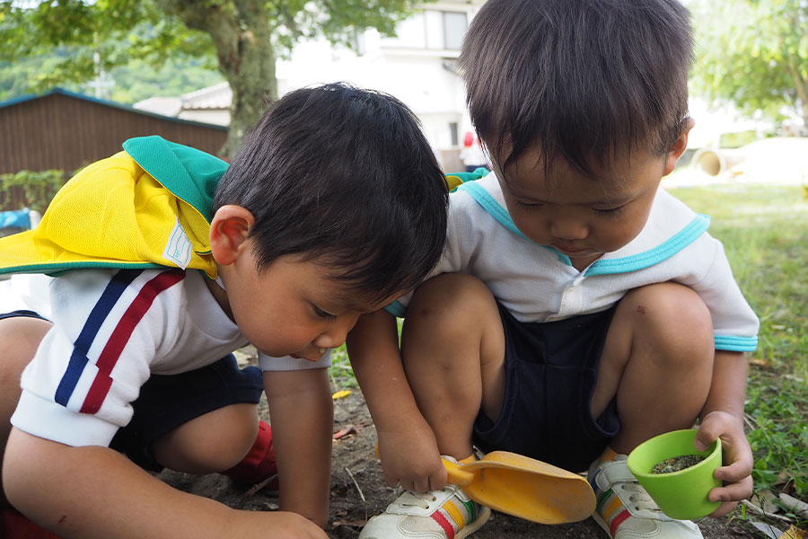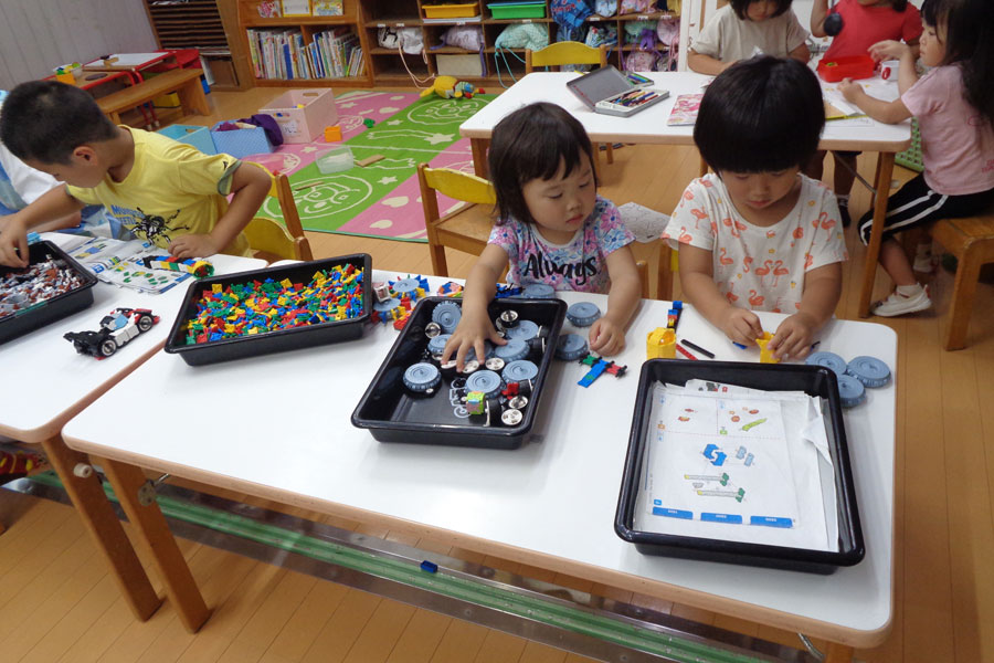 晴れている日は外でかけっこをしたり砂あそびをしたり虫を捕まえたりして遊んだりしています。園舎では絵本を読んだりお絵描きをしたりレゴで遊んだりしています。